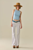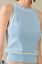 Gilet sans manches bleu avec détails de lignes blanches