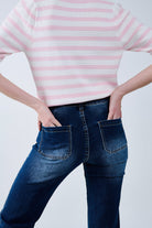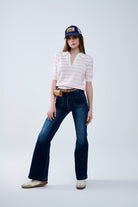 Polo blanc à rayures roses