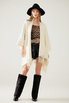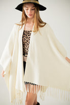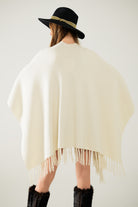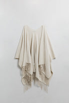 Poncho en tricot doux beige avec franges