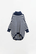 Pull oversize à col montant avec ailes de chauve-souris et rayures en bleu marine et gris
