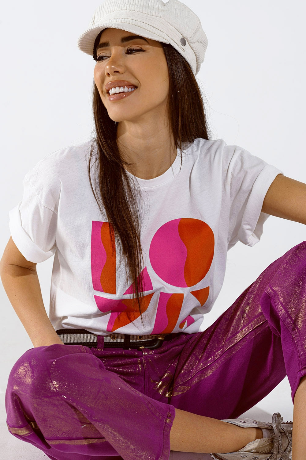 T-shirt avec imprimé numérique LOVE art déco en blanc