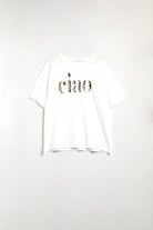 T-shirt blanc décontracté avec Ciao en imprimé léopard