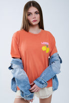 t-shirt décontracté orange avec imprimé citron