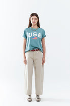T-shirt long ample vert avec logo USA