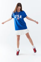 T-shirt long bleu ample avec logo USA