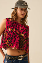 longueur: longueur pantacourt. SousCategorie: Top. collier: Encolure ras de cou. Manches: Style sans manches. Imprimer: Imprimé animal. Style: Style de fête. Tissu: Mousseline de soie. détails du produit: Détails plissés. runs true to size. S.