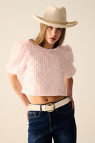 SousCategorie: Top. collier: Encolure ras de cou. Manches: Manches bouffantes. Style: Style de fête. détail: Dos ouvert. Tissu: Paillettes. runs true to size. S.