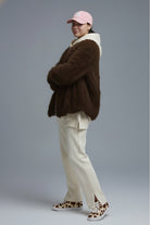Veste Fausse Fourrure Marron Col Large – douceur et allure assuree
