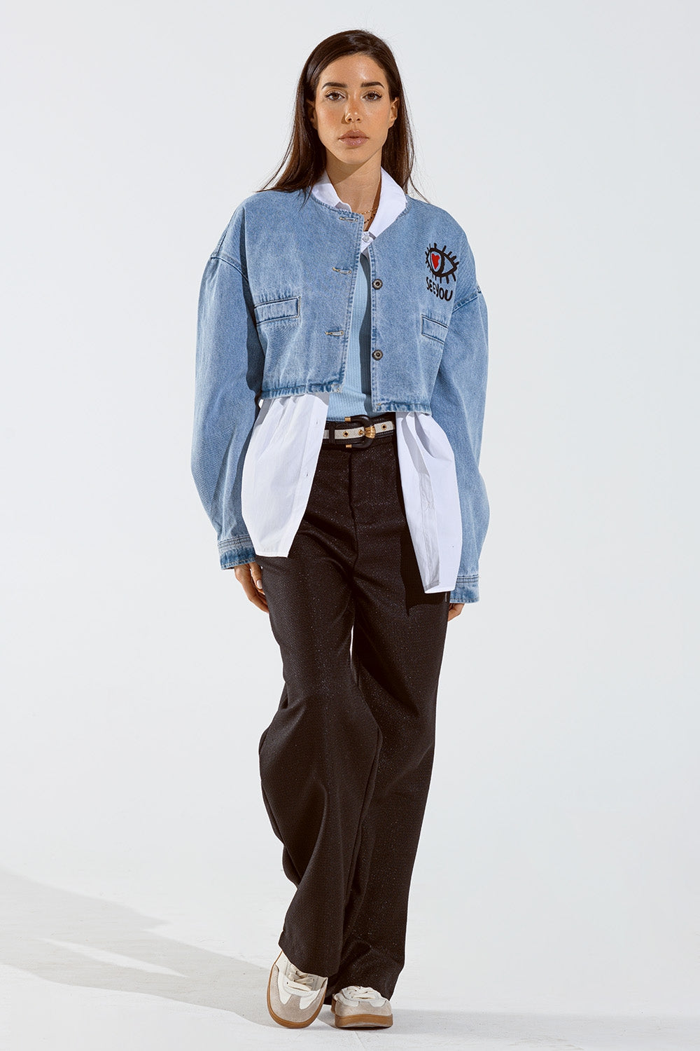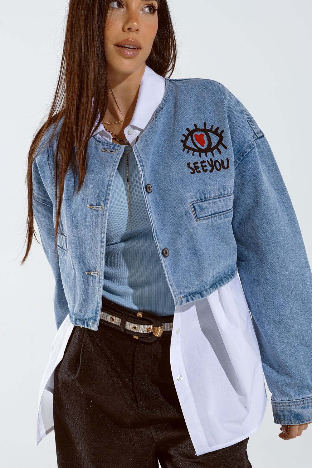 Veste courte en denim imprimé – esprit artistique et silhouette affirmée