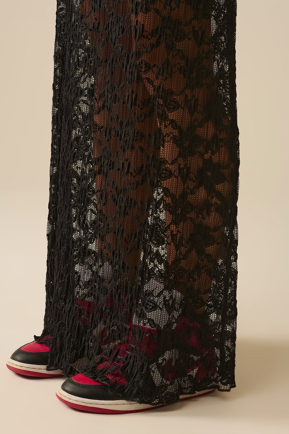 Jupe longue en dentelle noire à imprimé floral
