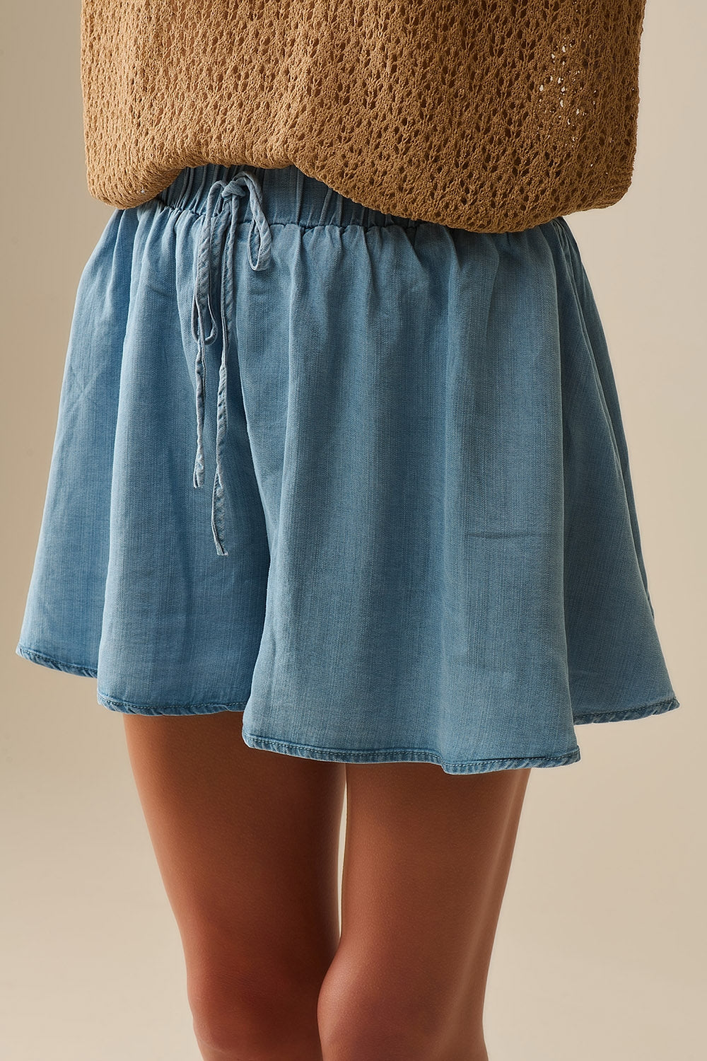 Short fluide en tencel bleu