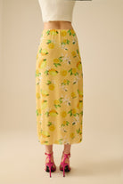 Jaune Jupe midi ajustée avec imprimé citron en tissu mesh