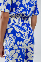 Combinaison à manches courtes avec trou de serrure sur le devant et motifs floraux en bleu
