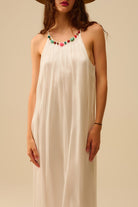 Robe longue dos nu plissée avec encolure en perles