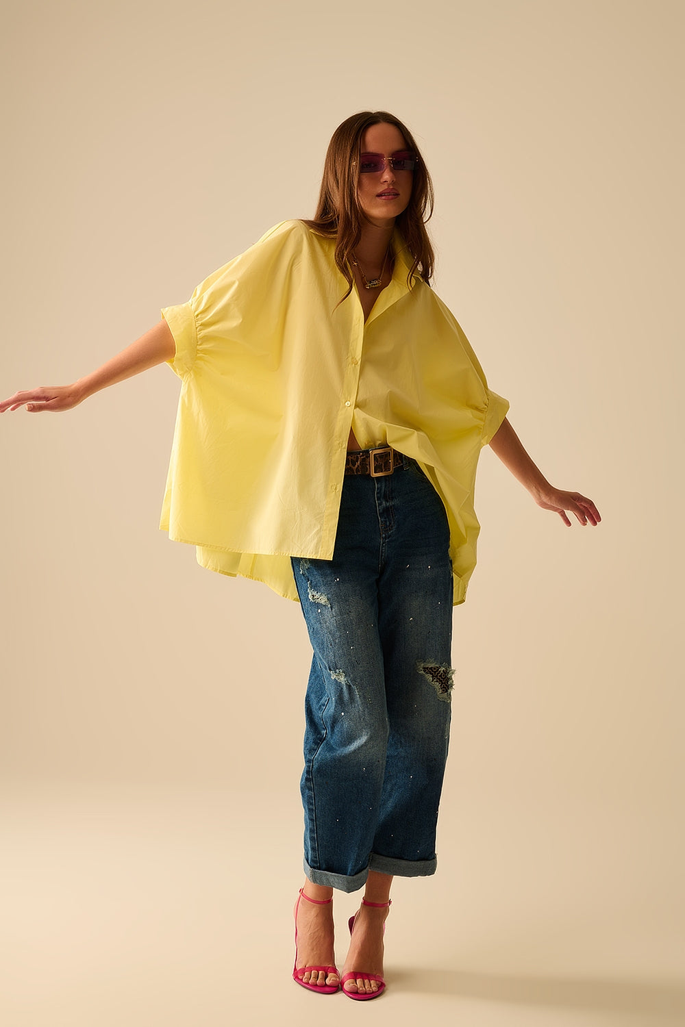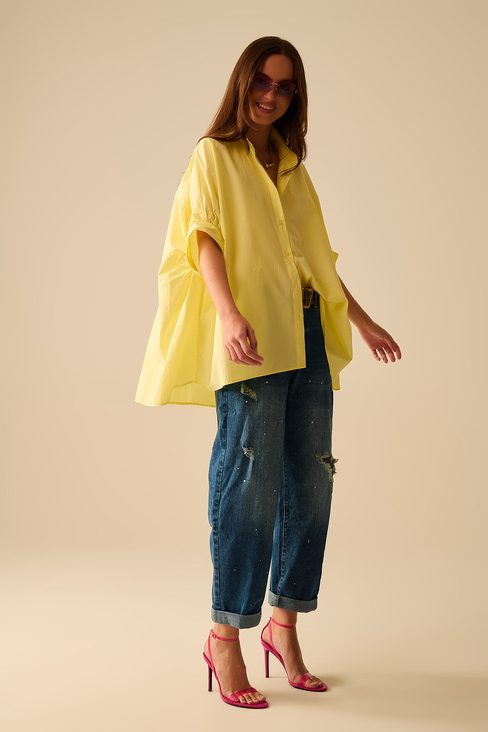 Blouse jaune oversized à manches courtes