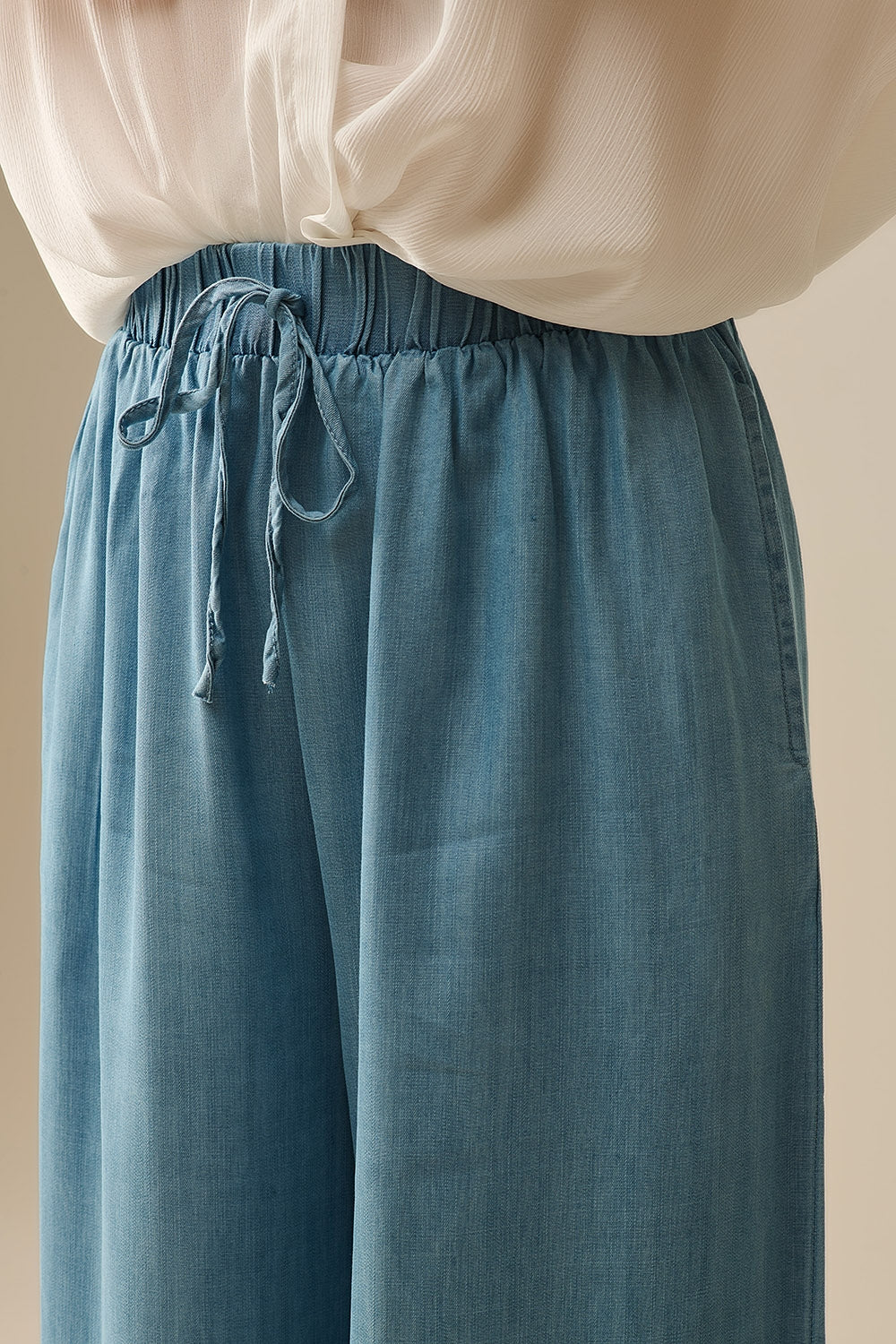 pantalon en dentelle à jambes larges avec ceinture élastique