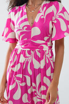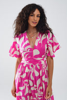 Robe longue à imprimé floral fuchsia avec dos ouvert